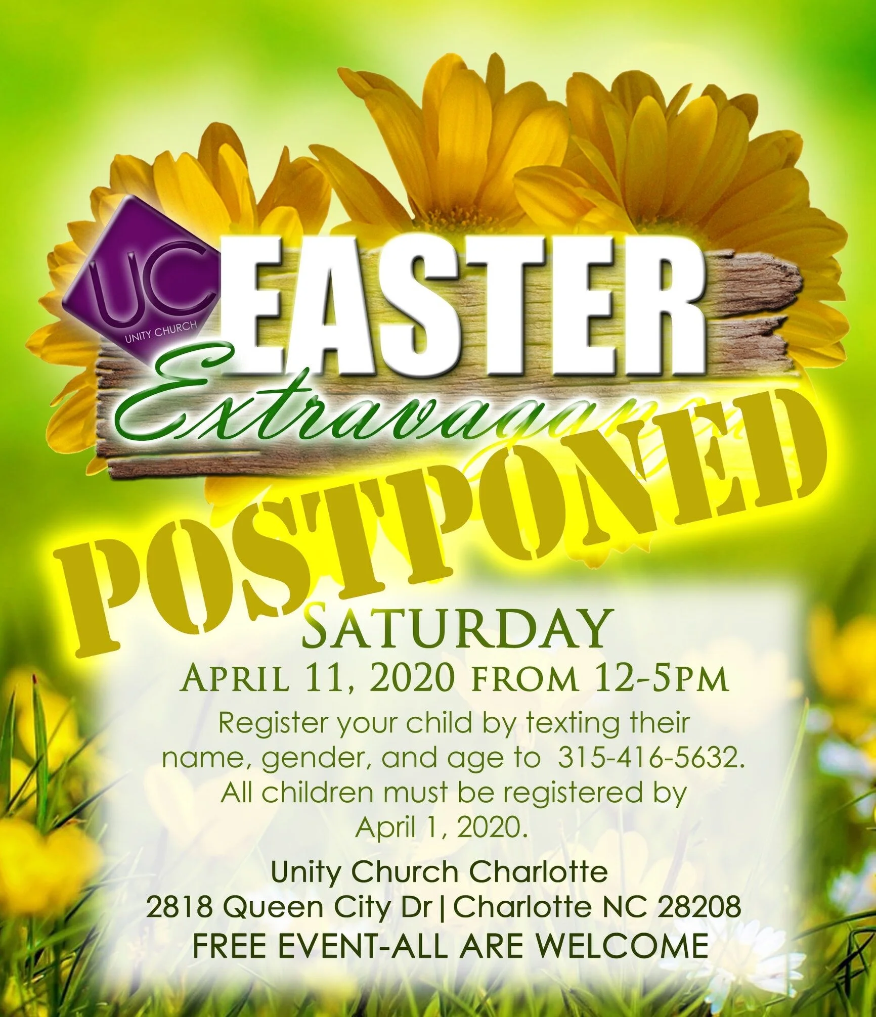 Easter Extravaganza Saturday, April 11, 2020 12:00 PM 5:00 PM Unity Church Charlotte 2818 Queen City Drive Charlotte, NC, 28208 (map) Google Calendar ICS