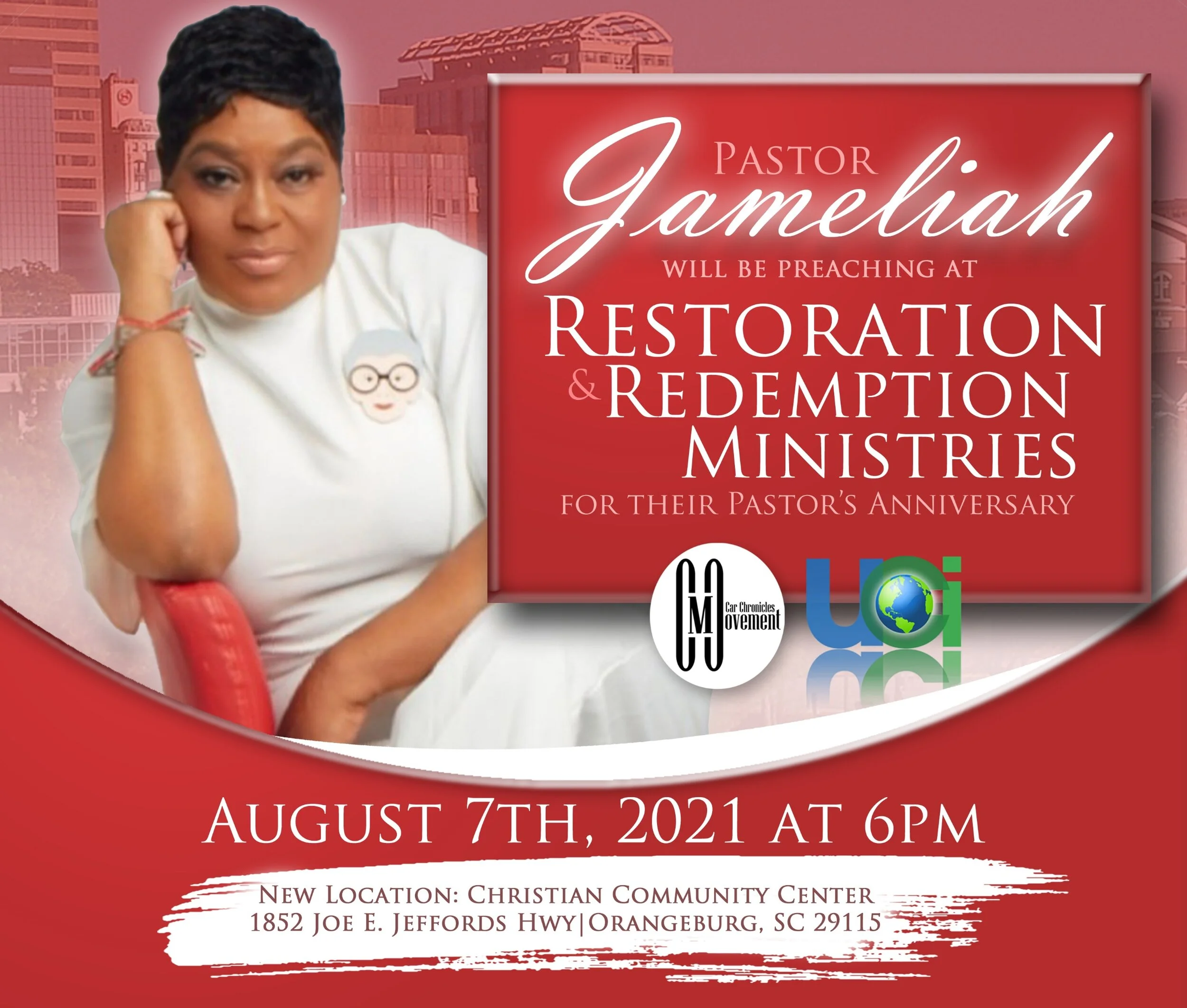 Back to All Events Restoration & Redemption Ministries Saturday, August 7, 2021 6:00 PM 9:00 PM Restoration & Redemption Ministries 1335 Amelia Street Orangeburg, SC, 29115 (map) Google Calendar ICS