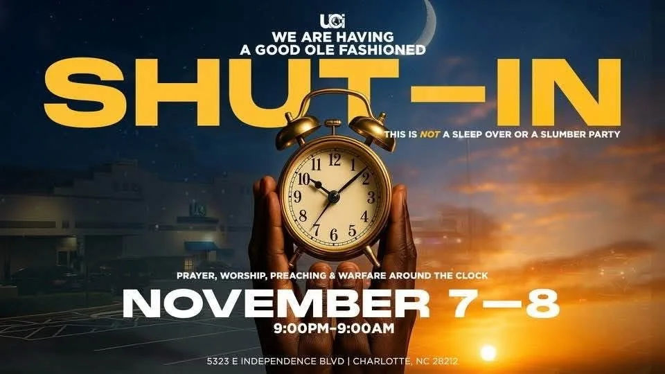 SHUT-IN Friday, November 7, 2025 9:00 PM Saturday, November 8, 2025 9:00 AM Unity Charlotte International 5323-A East Independence Boulevard Charlotte, NC, 28212 United States (map) Google Calendar ICS